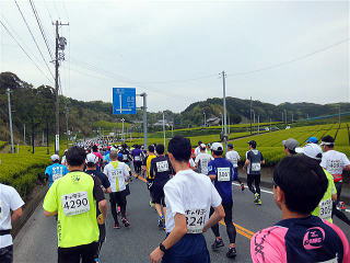 ゴール後はゆるキャラ、茶飲みやきんじろうくんと握手。