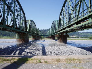 大井川の鉄橋。東海道本線が走っている。