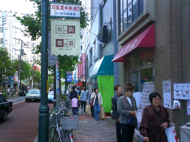 布、生地の店がたくさんある通りです。 |