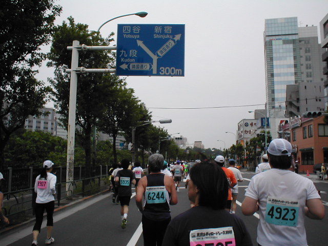 飯田橋の駅前あたりかな? ここでトイレに行きました。 その地点が5キロでした。 32:43(7:53) 四ッ谷の方へ向かいます。 市ヶ谷駅前が6キロ。 38:54(6:10)
