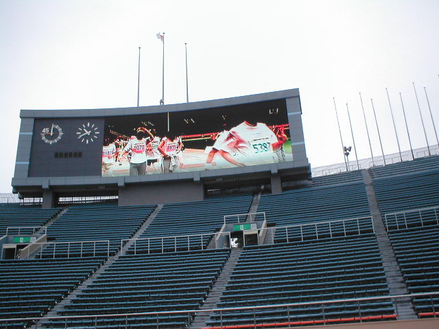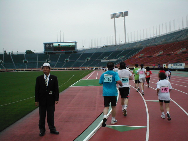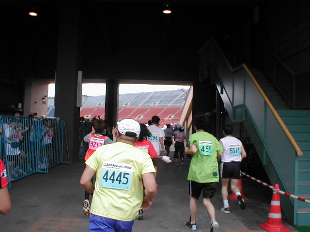 マラソンゲートをくぐったら・・・ 国立競技場のトラックを走れるなんて感激! オリンピックにでているみたい! ビジョンでもフィニッシュの 映像を映してくれてます。 フィニッシュ地点!お疲れさま。