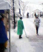 数分前バスから降りてきて、そろりそろりと足下を気にしながら