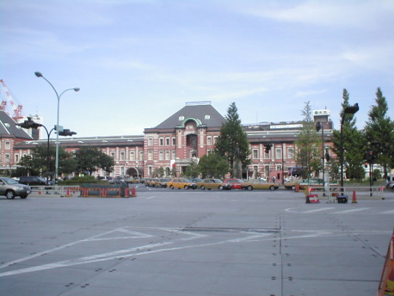 東京駅丸の内口。皇居を走るランナー、