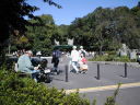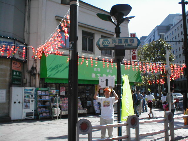 仏壇やさんがいっぱいです。さて、ここで問題です。 道路の右側にはほとんど仏壇屋さんが ありません。どうしてでしょう? こたえ。反対側は日差しが当たって、日焼けするから。 上野駅に着きました。 上野公園の中は家族連れでいっぱいです。 ドリンクを買って一休みしました。 学問の神様ですね。 下りがきつかったです。 東京ドームが見えました。 神保町です。 28.5キロ地点。 案内役の方もご苦労様です。 皇居にたどり着きました。 ここからは走りやすくなります。