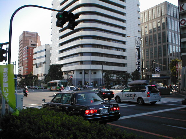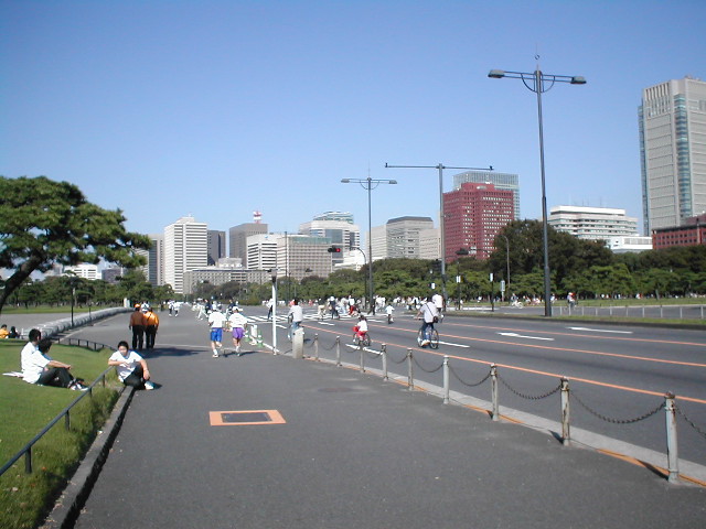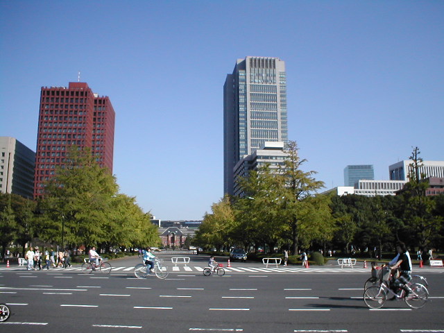 奥に見えるのが東京駅。右のビルは丸ビル。